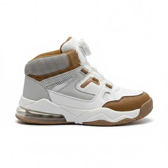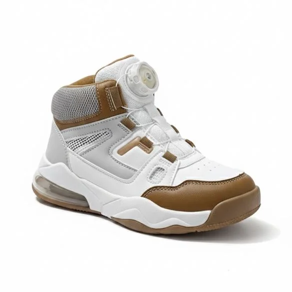 Basket Enfant montante Actask — Blanc & Marron, ultra-légère, serrage rapide