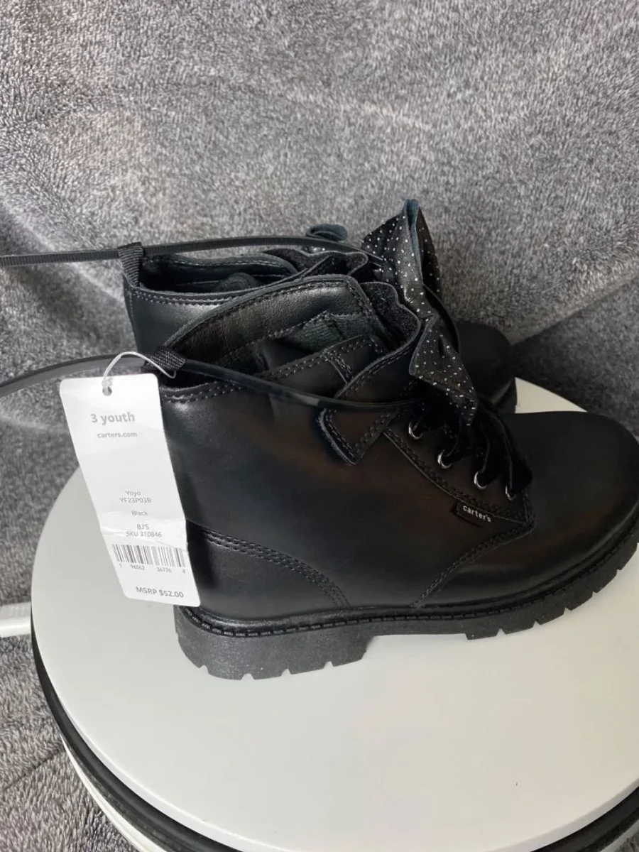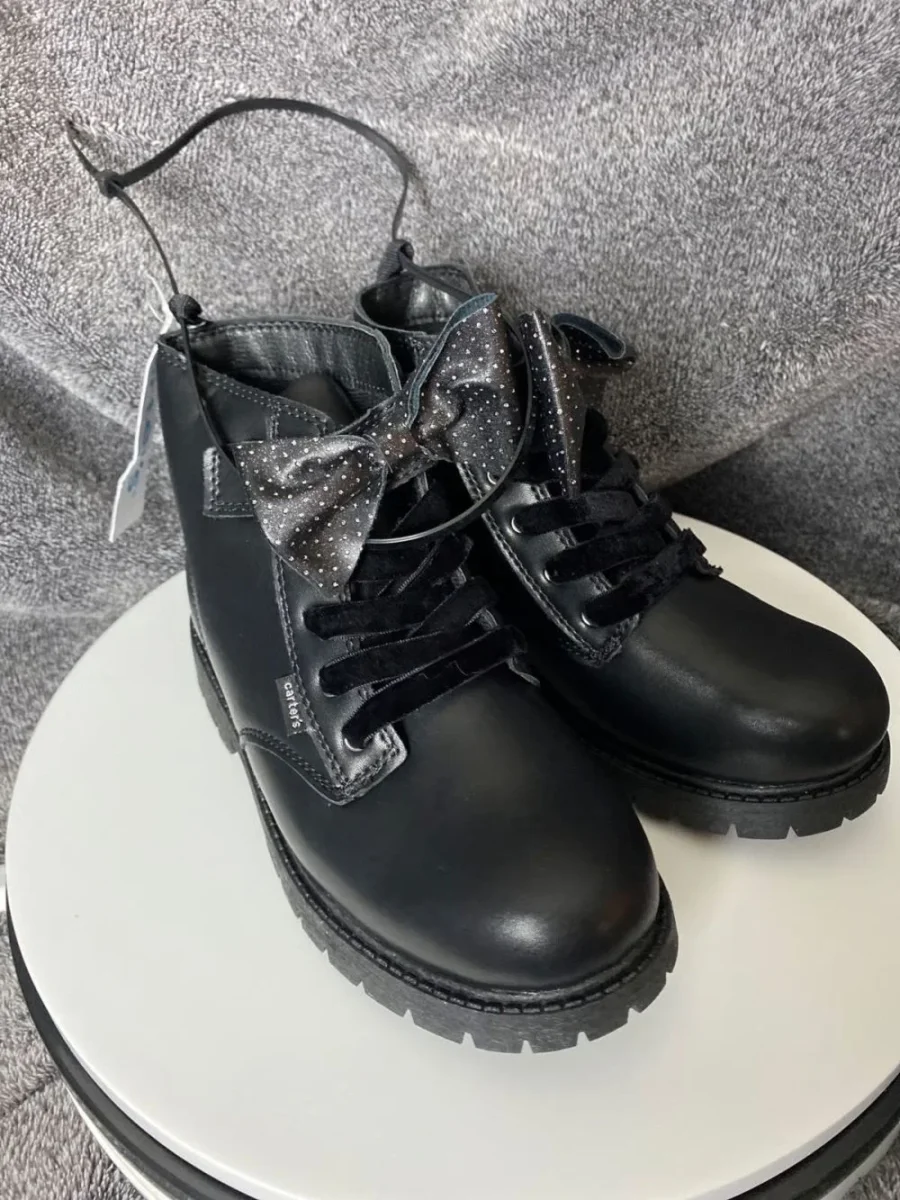 Magnifiques bottes pour fille de la marque Carter’s style biker à nœud noir et strass.