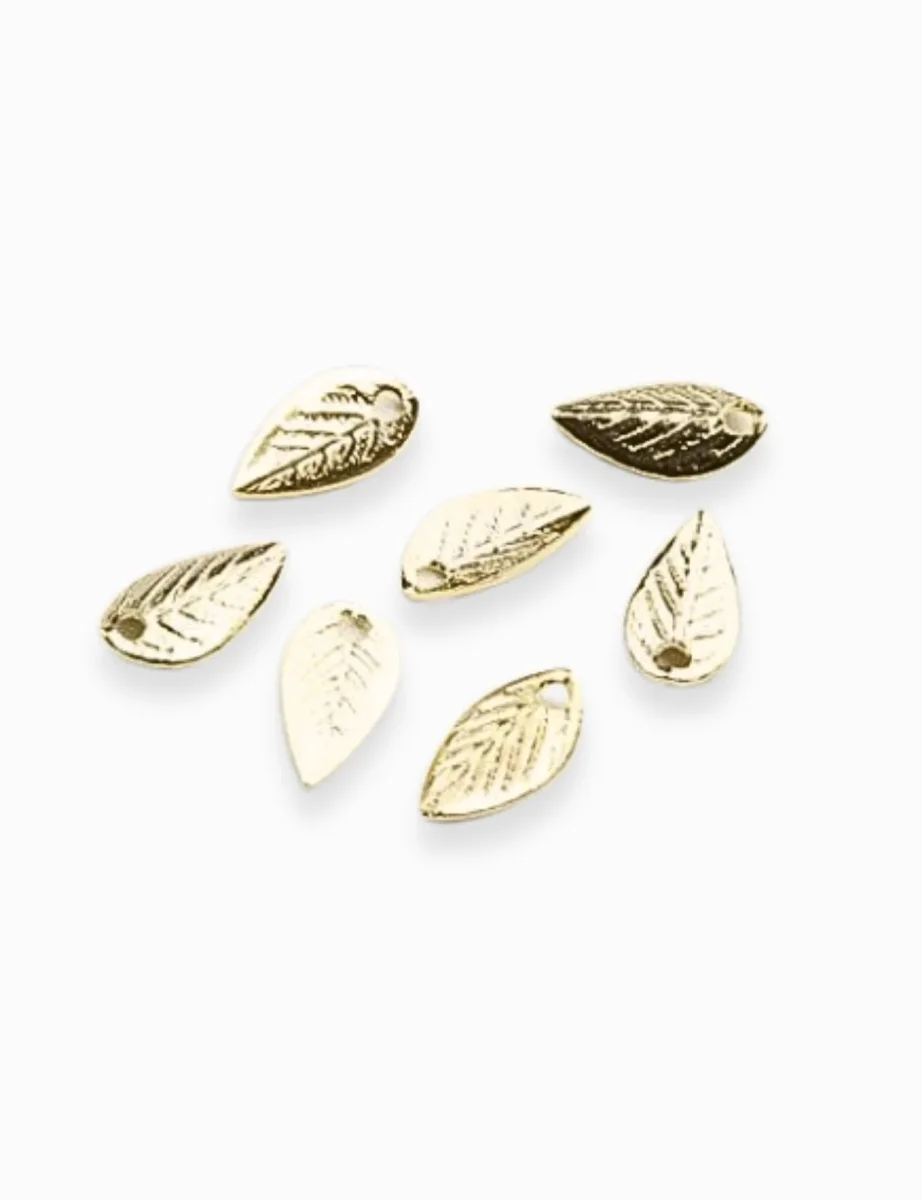 Breloques en forme de feuille. Hauteur : 7.50mm Largeur : 4mm Diamètre du trou : 0.80mm Matière : laiton Breloques feuilles.Sans nickel, ni plomb, ni cadmium.