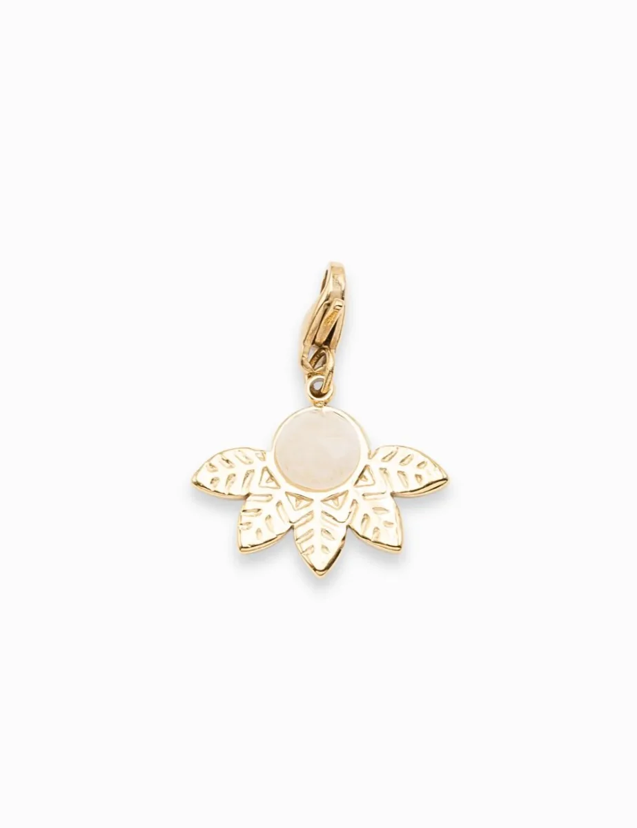 Charms en forme de feuille orné d’un cabochon en pierre naturelle.