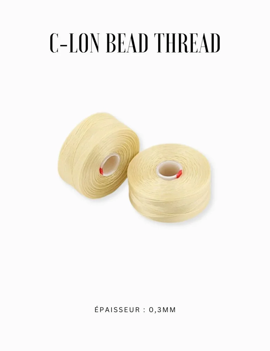 Fil polyfilament C-Lon taille D. Épaisseur : 0.30 mm Vendu par bobine de 71 mètres Fil de nylon souple et résistant, convient pour les techniques de tissage.