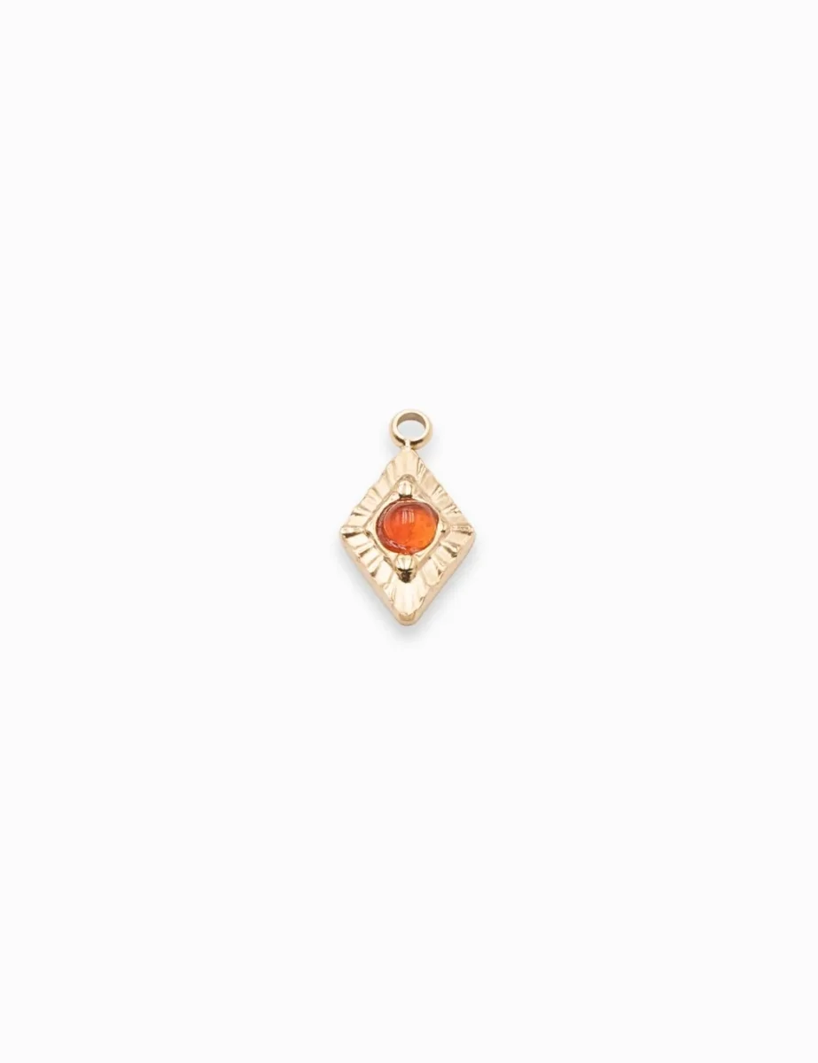 Pendentif en forme de losange avec cabochon. Dimension : 13 x 8 mmL’attache : 1.40 mmMatière : acier inox 304