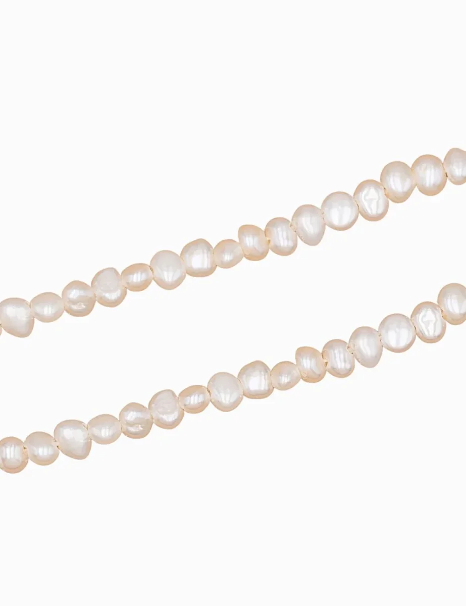 Perle d’eau douce Dimension perles : 5-6mmDiamètre trou : 2 mmLongueur : environ 35 cmNombre perles : environ 64 pièces/filMatières : Perle d’eau douce
