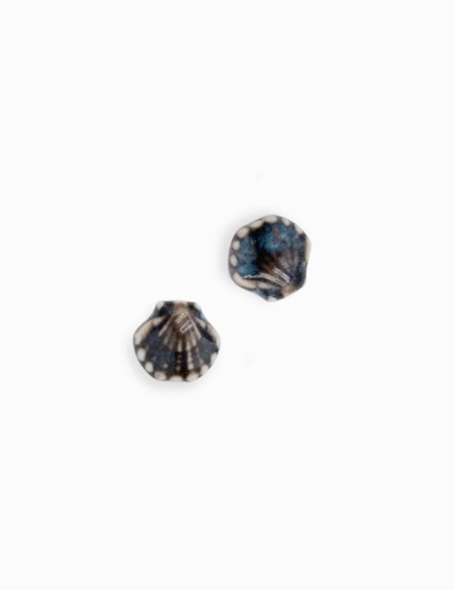 Perles en forme de coquillage. Dimension : 11 x 12 mm Diamètre du trou : environ 2 mm Matière : Céramique
