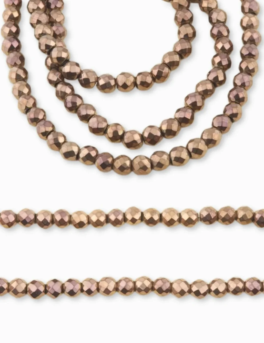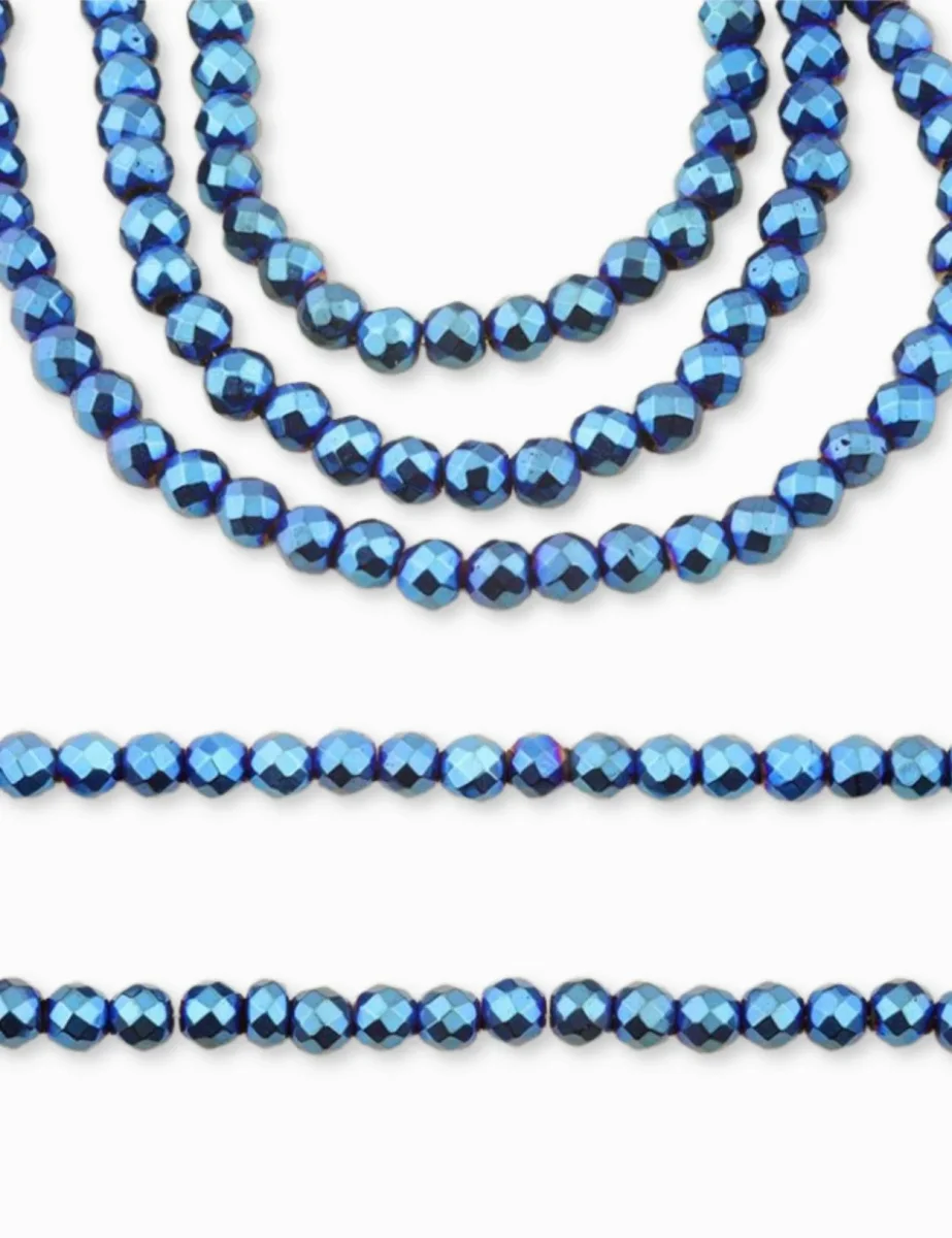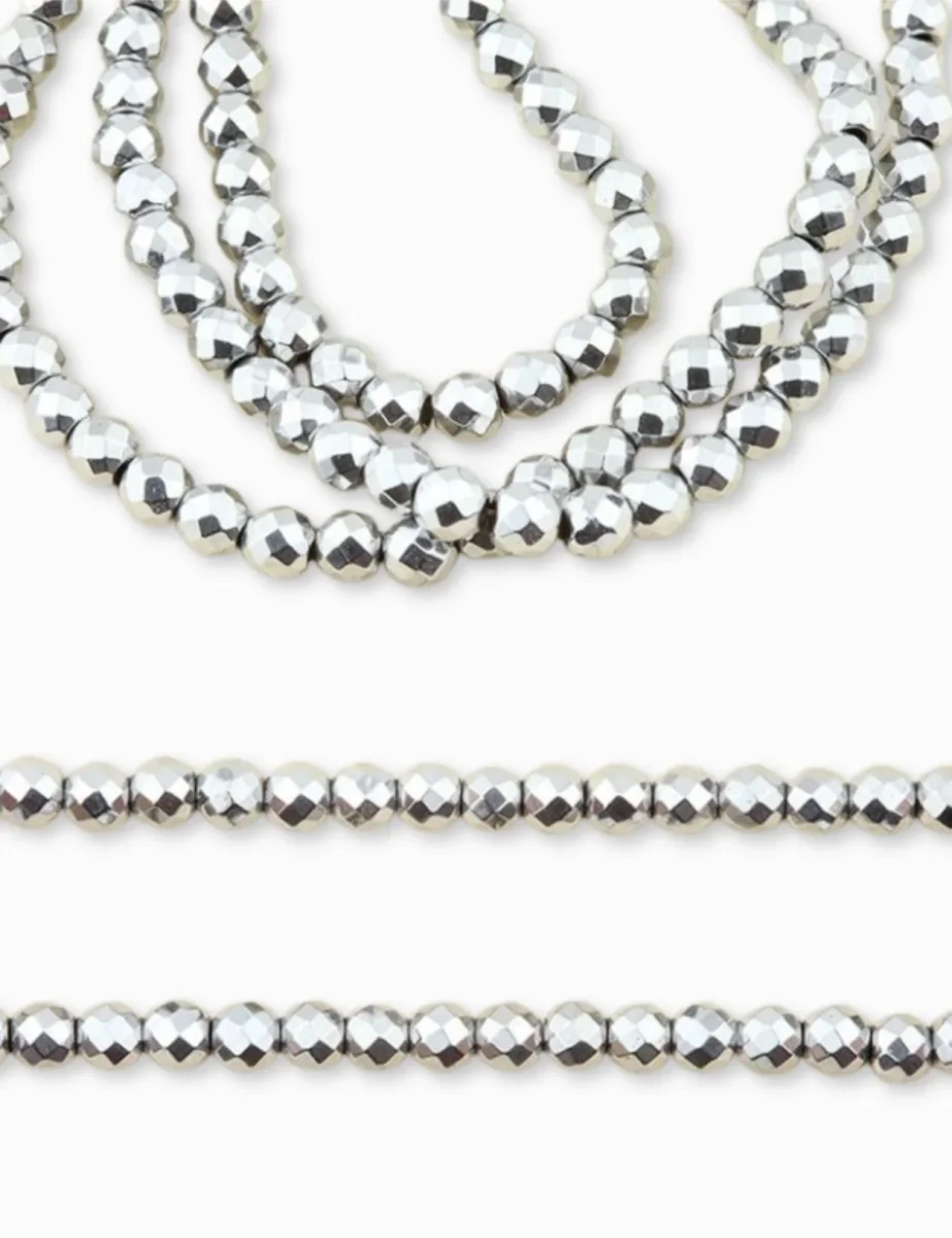 Perles ronde facettée en Hématite 4 mm – Longueur 40 cm