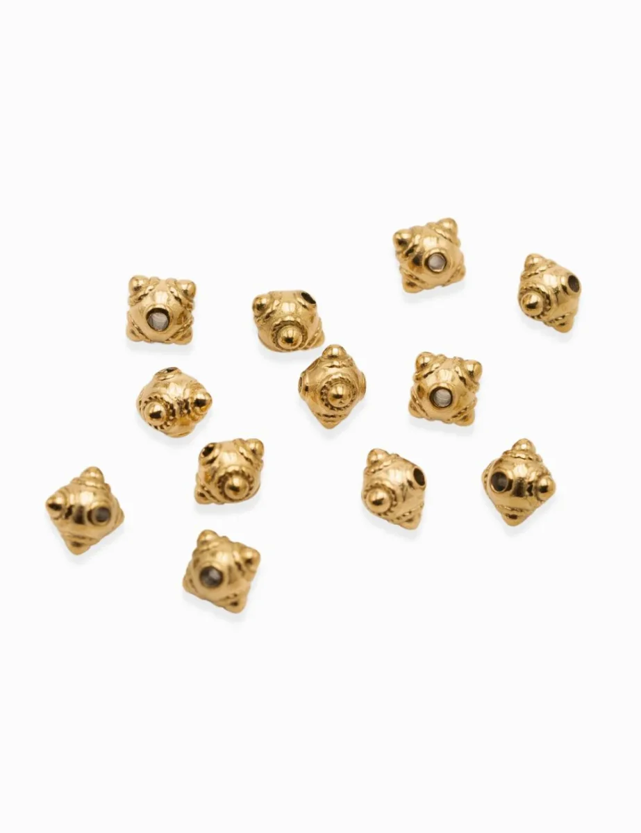 Intercalaire en acier inoxydable en 9mm. Dimension : 9mmDiamètre du trou : 1 mm Matière : Acier inoxydable 316 Dorure résistance environ 2 ans Nos fournitures en acier sont en inox 316, matériau hypoallergénique, inoxydable et solide. L’inox doré est une alternative aux articles « plaqué or » pour un coût moins onéreux. Le traitement doré a […]