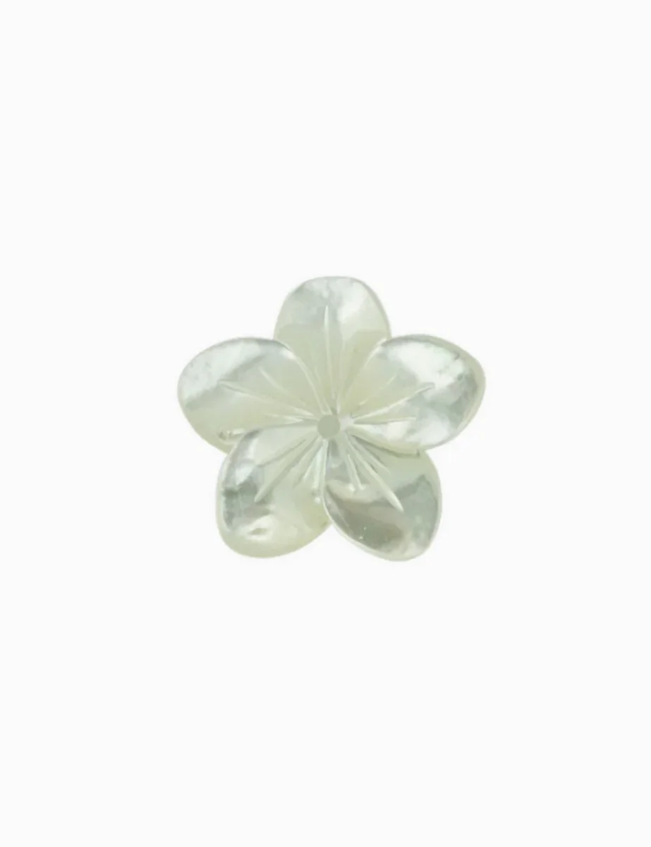 Sequin fleur en forme de mérisier en nacre naturelle. Diamètre : 14 mmDiamètre du trou : 0.80 mmÉpaisseur : 2 mmMatière : nacre naturelleSculpté à la main Vendu à l’unitéChaque pièce est unique, peut présenter quelques légères irrégularités